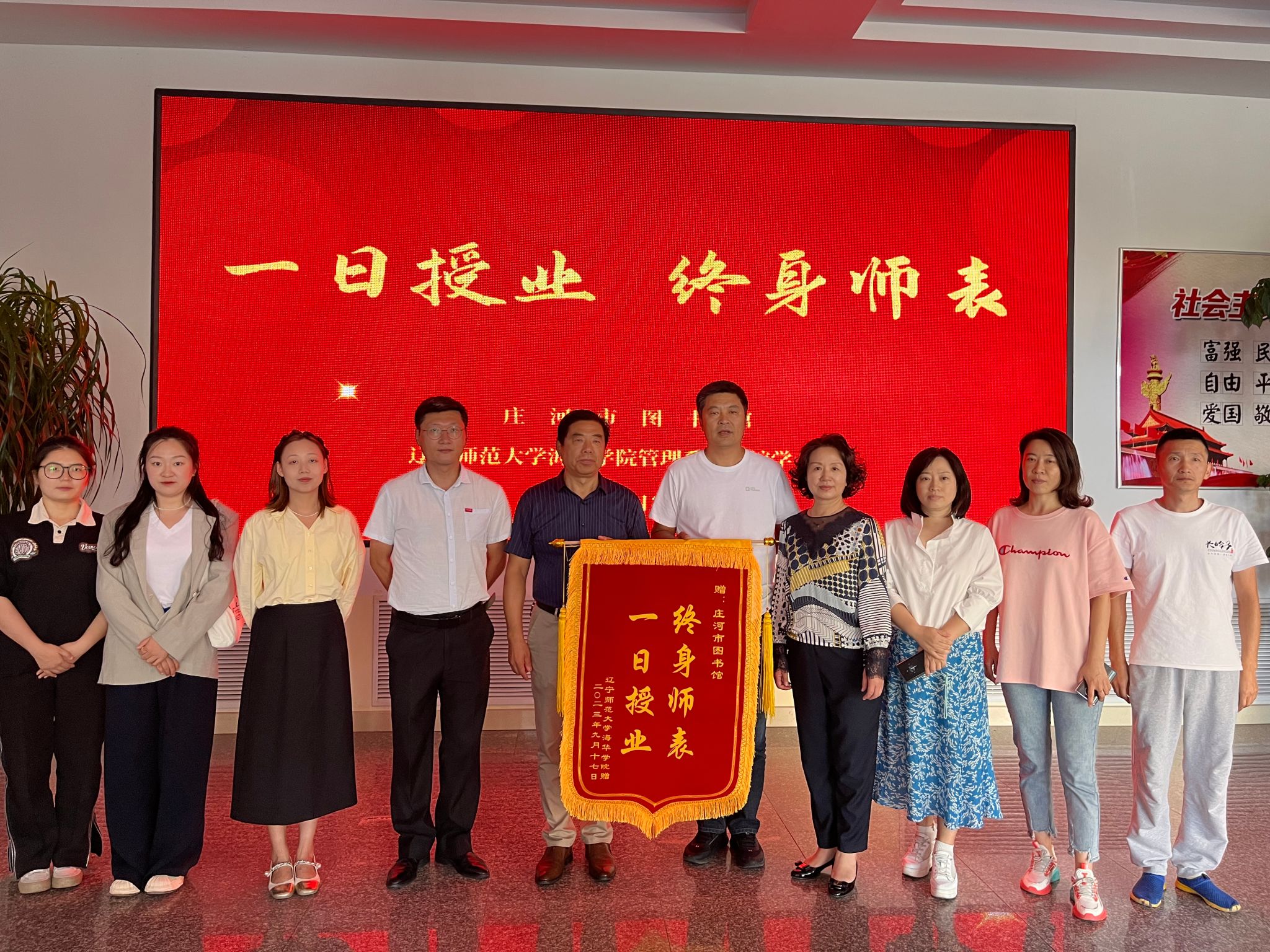 在为期三天的专业实践结束后,管理系主任栾美晨、教学副主任朱爱辉一行代表学校向庄河市图书馆赠送锦旗,感谢庄河市图书馆对本次专业实践提供的帮助。下一步,管理系将与庄河市图书馆进一步展开合作,有针对性、计划性的开展校地共建合作。
