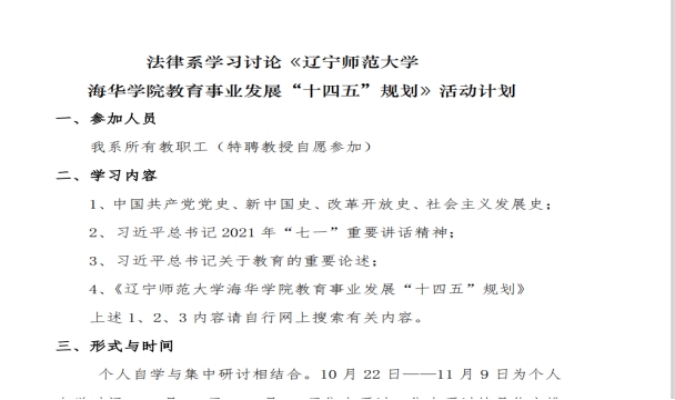 11月24日和12月1日下午,法律系召开了《国产一区二区日本在线教育事业发展“十四五”规划》学习研讨会议。会议由院长助理、法律系主任王树海主持,法律系全体青年教师参加会议并交流发言。