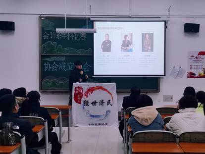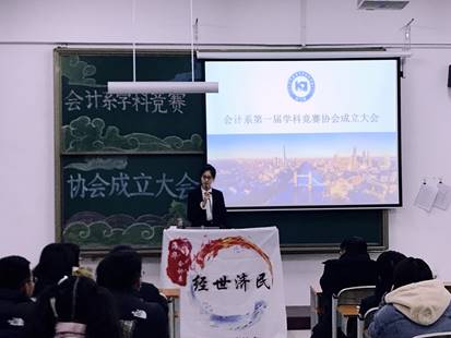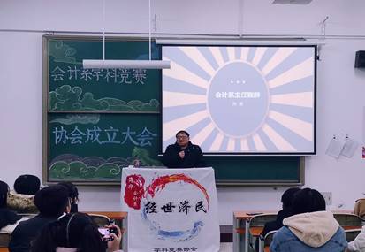 为加快会计学专业向应用型试点专业转变,培养一批具备创新创业意识的新商科应用型人才,形成“以赛促教、以赛促学、学赛结合”教学新模式,全面贯彻学校“追求科学精神,培养创新人才”的培养理念。会计系于2020年11月21日晚在综合教学楼A106教室举办会计系第一届学科竞赛协会成立大会,刘迪教授、徐晓鹏教授、付淑敏教授、郭向超老师和高欢欢老师等指导教师以及会协会全体成员出席了本次成立大会,大会由祁泓言同学主持。
