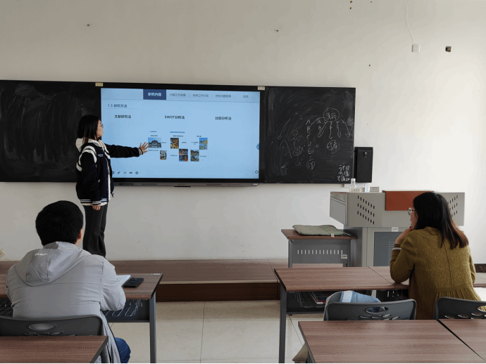 为切实加强毕业论文的过程管理,及时了解和掌握学生毕业论文进展及完成情况,依据《关于开展2024届毕业生毕业论文中期答辩的通知》。管理系于4月19日,在东西两校区分别组织开展了2024届毕业论文中期答辩,本次中期答辩涉及旅游管理、图书馆学两个专业。采用现场PPT汇报和评审提问的方式进行,各教研室的教师作为答辩评委参会指导。