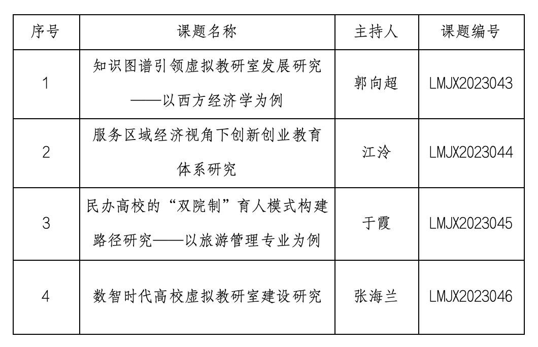 11月9日,根据《辽宁省民办教育协会关于批准教育科学“十四五”规划2023年度立项课题通知》(辽民教协发[2023]2号),我校获批4项辽宁省民办教育协会教育科学“十四五"规划2023年度课题。